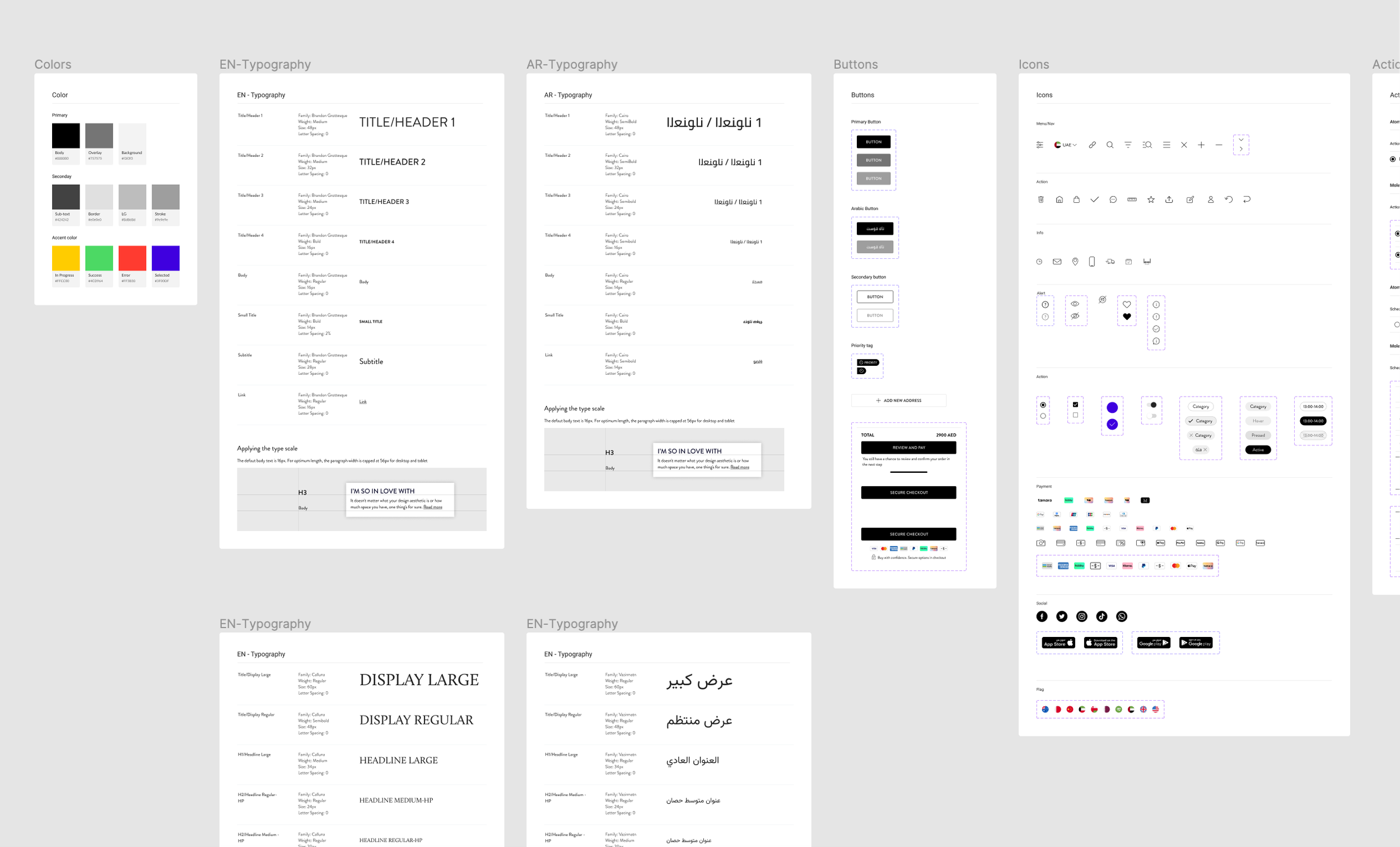 From sketches to mid-fidelity screens, I started by laying out all the pages I needed to design. I blocked out sections for each element and did my detailed work.